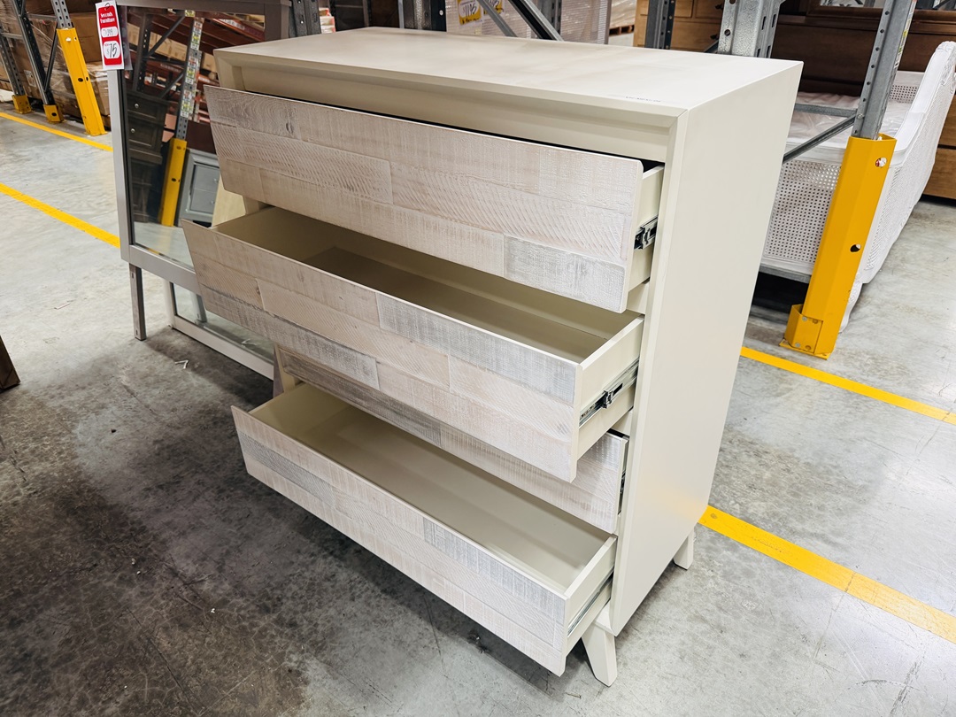 Stylish and practical, this tallboy features a whitewash timber finish with four spacious drawers for organized storage. Perfect for adding both functionality and a fresh, modern look to your bedroom.