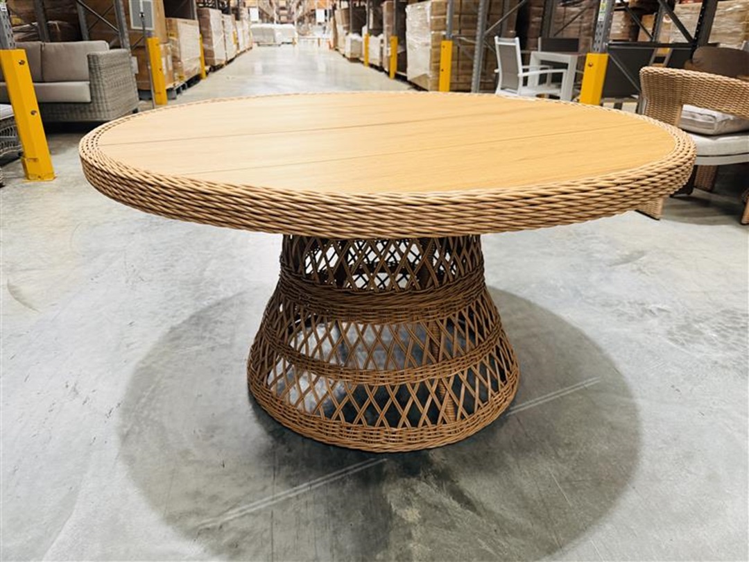 Original price was: $1,700.00.$895.00Current price is: $895.00.A stylish outdoor dining table crafted with natural wicker detailing in a round design. Perfect for patios and garden spaces, it combines durability with relaxed outdoor charm.