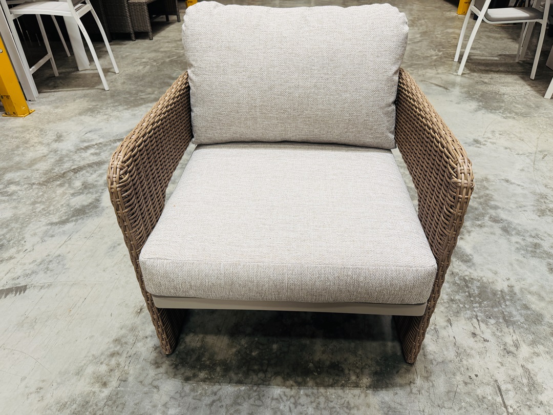 Original price was: $890.00.$445.00Current price is: $445.00.A comfortable outdoor armchair featuring woven wicker detailing and a sturdy aluminium base. Designed for durability and style, ideal for outdoor dining or lounge settings.