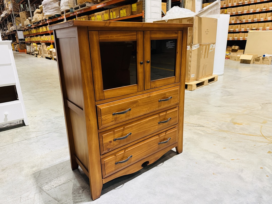 Warm Cherry 3 Drawer Tallboy with Glass Doors