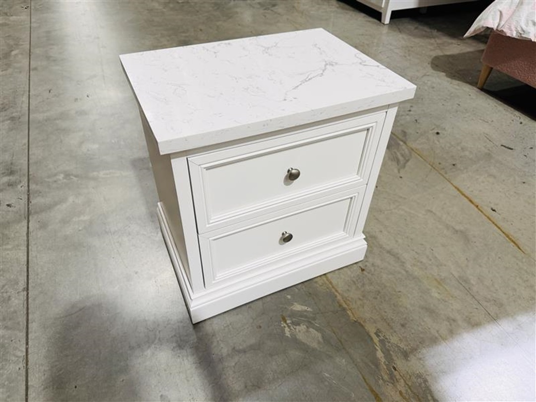 White Timber 2 Drawer Bedside with Marble Top