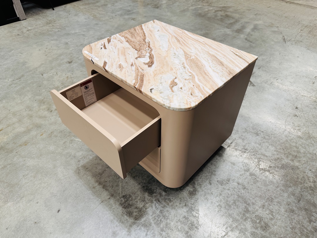 Designed to add a touch of luxury, this bedside table features a smooth marble top and a sophisticated dusty rose finish. With two spacious drawers, it offers convenient storage for nighttime essentials while enhancing the overall look of modern and contemporary bedrooms.