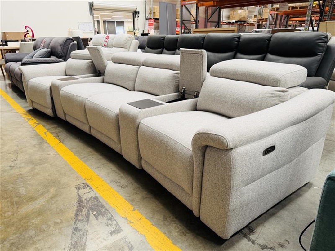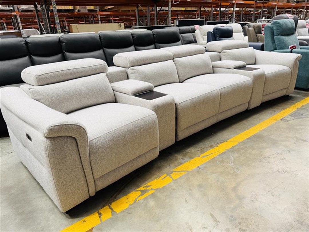 Beige Fabric 4 Seater Home Theatre with Recliners