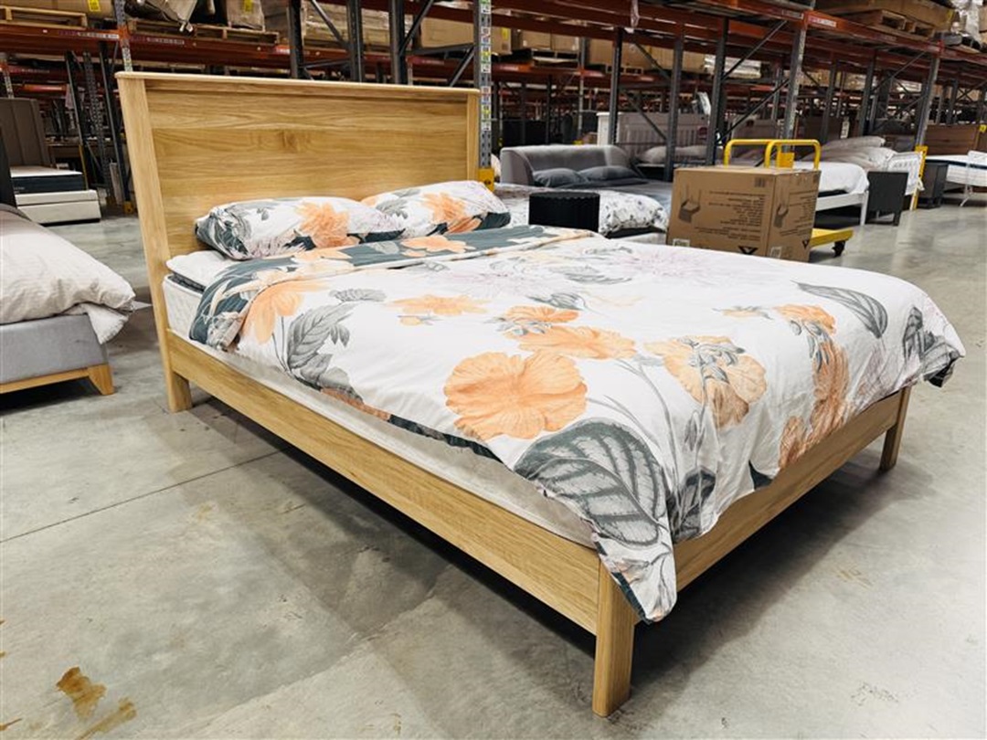 The Blonde Timber Queen Bed showcases a clean, natural timber finish with a strong frame, bringing warmth and a timeless look to your bedroom while offering reliable support.