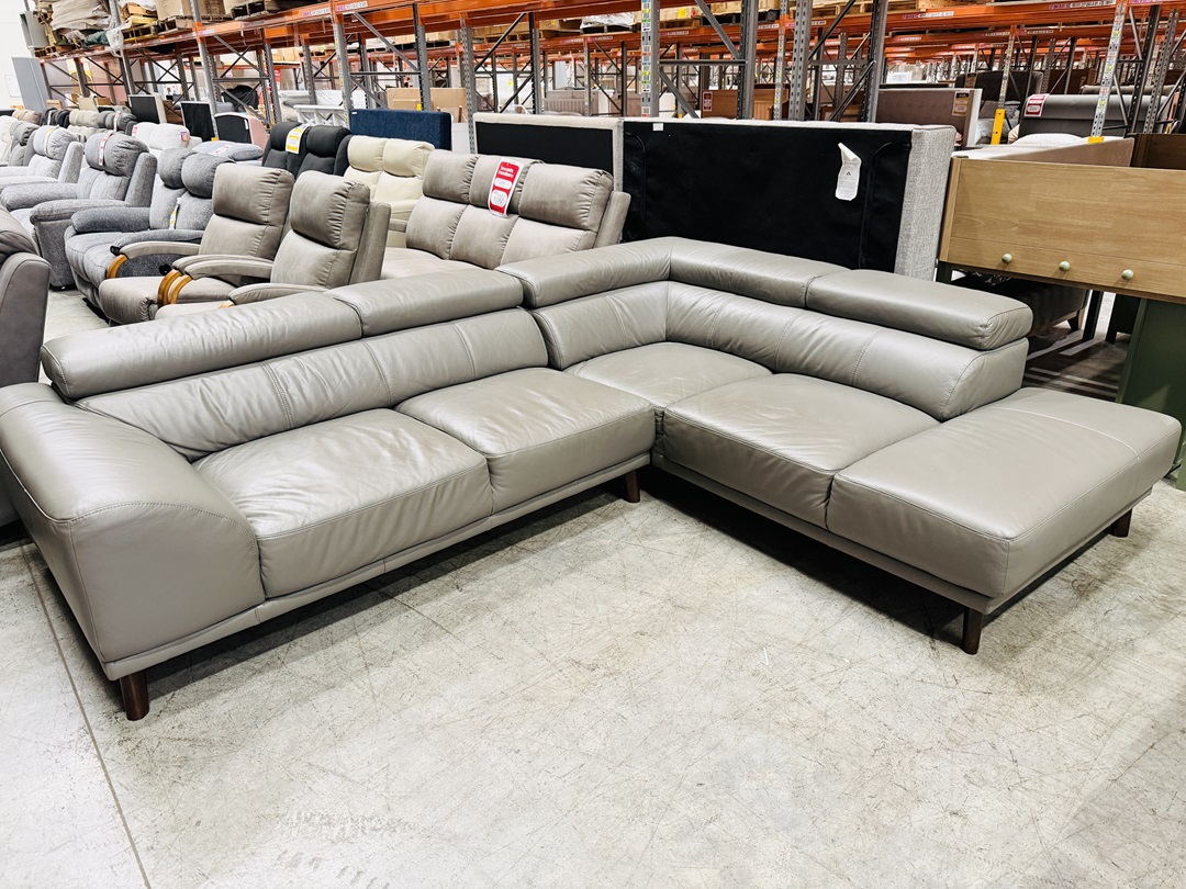 Dark Grey Leather Corner Lounge with Adjustable Headrests