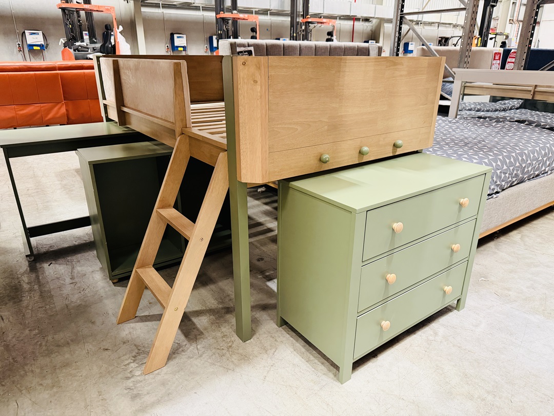 Green & Natural 4pc Loft Kids Bed with Pullout Desk & Storage